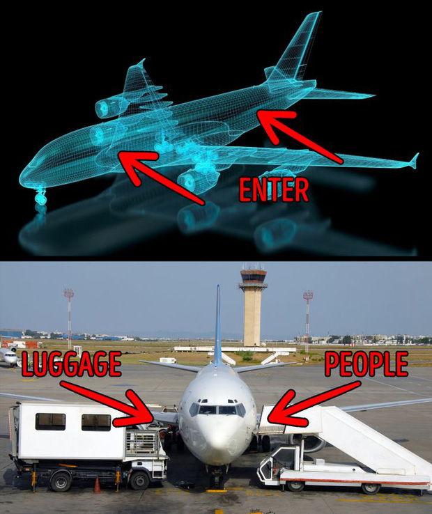 Không phải tất cả, nhưng phần lớn máy bay có lối vào hành khách chính ở phía bên trái. Theo đó, phía bên phải là dành cho hành lý (hầm hàng cũng ở bên phải), vì vậy nó không an toàn cho hành khách và đây cũng được xem là một quy ước được hình thành lâu đời của ngành vận tải hàng không. Ngoài ra, vị trí cửa lên xuống ở bên trái nên phi công thường ngồi phía bên này để điều khiển máy bay dừng lại. Vị trí cửa này khiến cho cơ trưởng đỗ máy bay dễ dàng hơn tại khu vực sân đáp.
