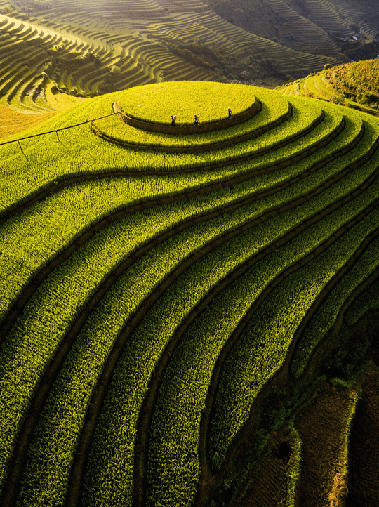 Những thửa ruộng Mù Cang Chải trải qua cả trăm năm canh tác và chăm sóc tạo nên cảnh quan với hình khối đẹp bậc nhất thế giới.